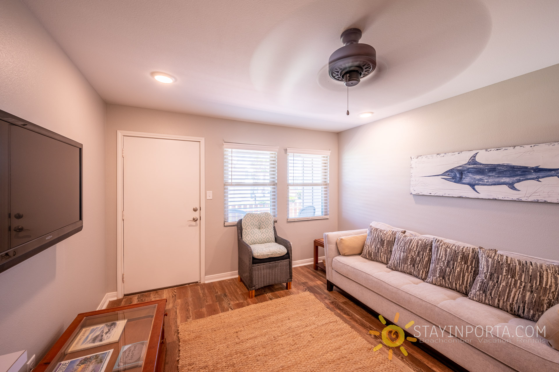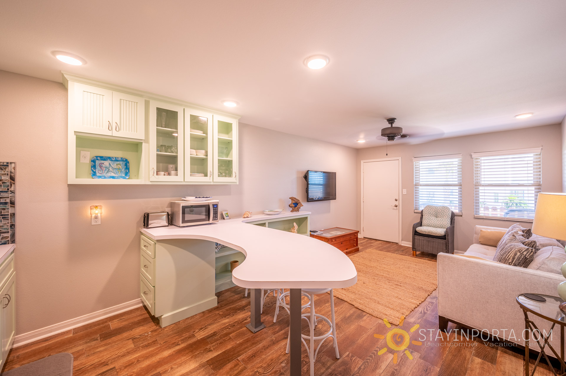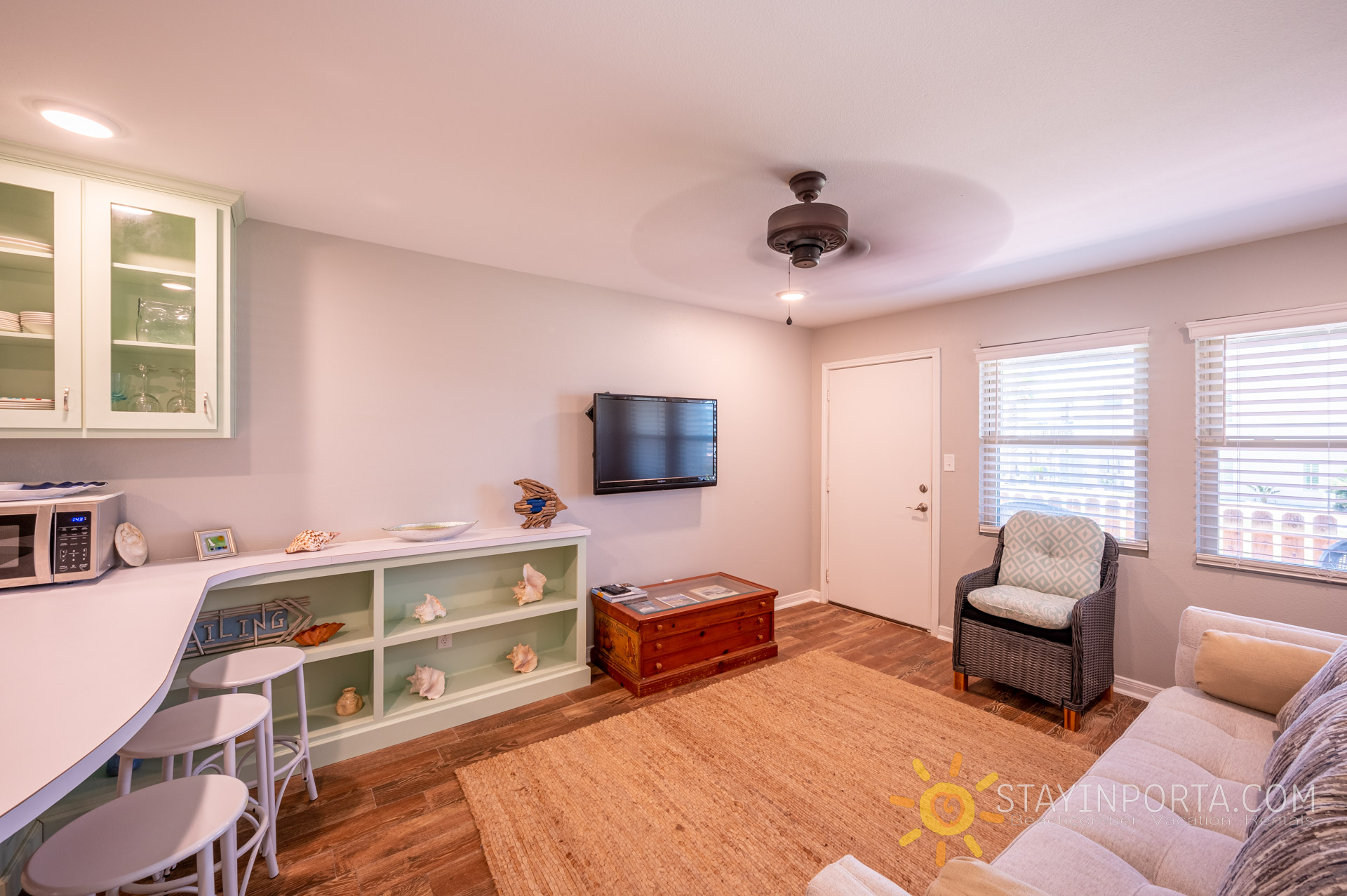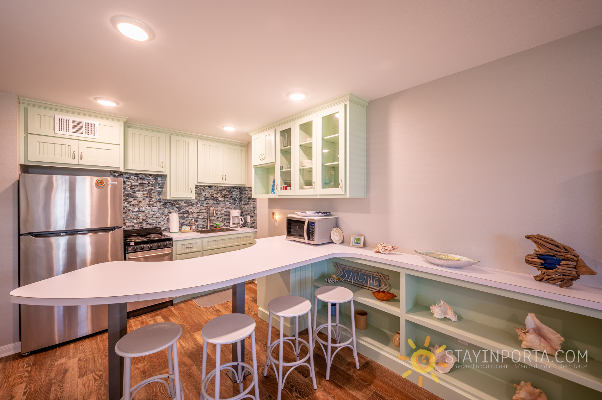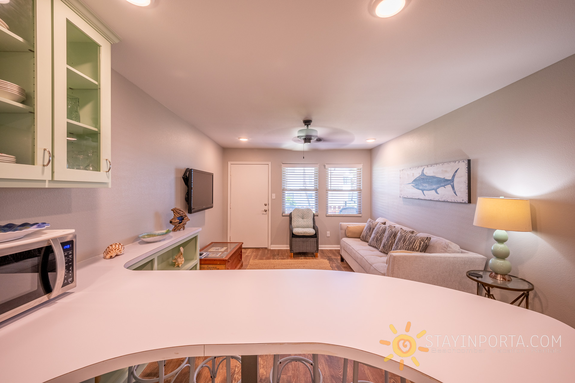 Sunrise Villa #110 is a lovely 1 bedroom 2 bathroom ground floor condo. Sleeps 4, This corner unit has a nice patio which is gated and partially covered overlooking the grassy lawn. There is a Queen bed in the bedroom and sleeper sofa in living room. There is a nice sized pool with shaded areas patio furniture tables and chairs.. The boardwalk to the beach is only about a 5 minute walk away. There is a coin laundry room for your use on property. sorry no pets no smoking. You will have 1 assigned parking space, no boats, no trailers. There is limited amount of unmarked parking spaces for guests or 2nd vehicles/ golf carts. This condo is located in the golf cart approved driving area.