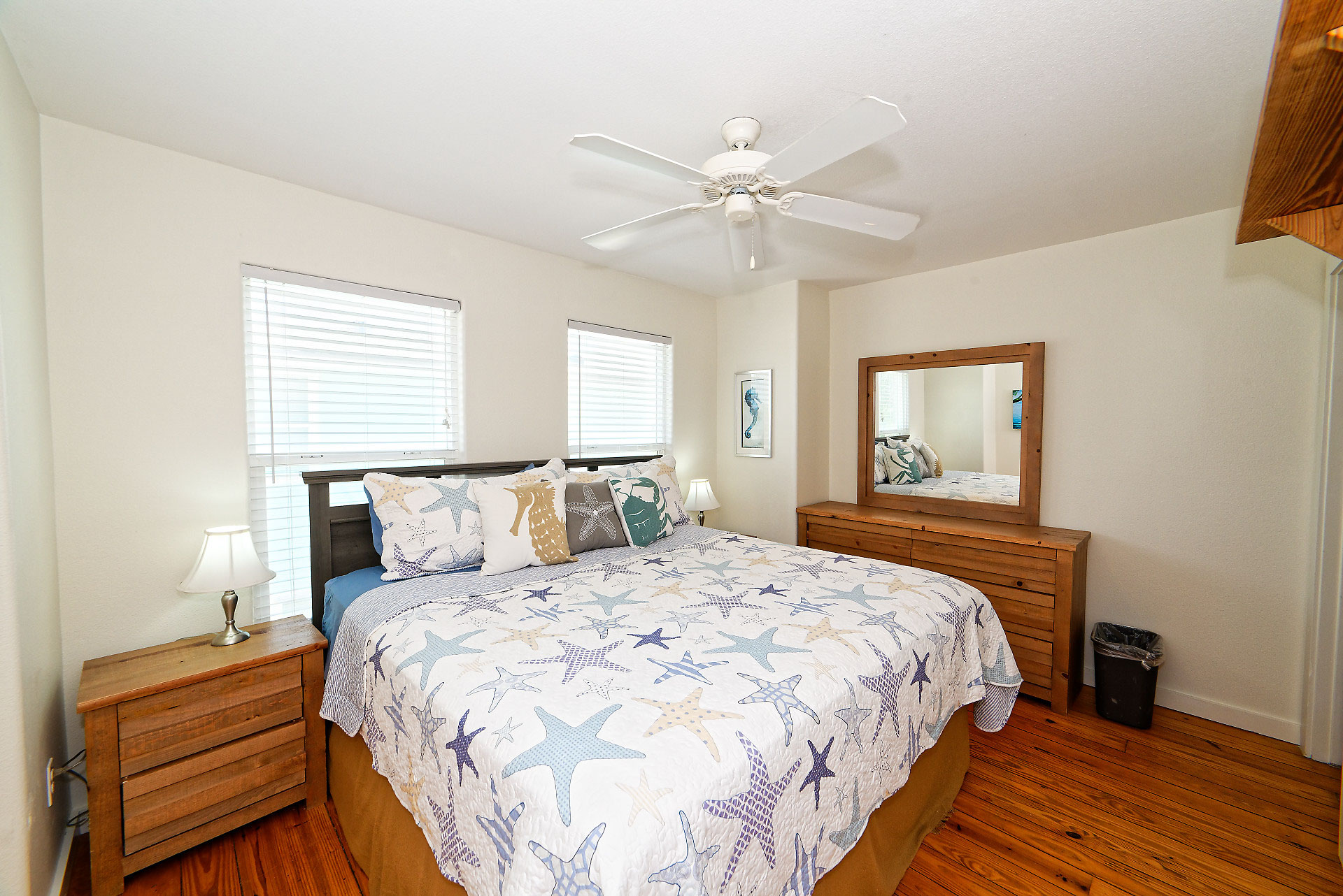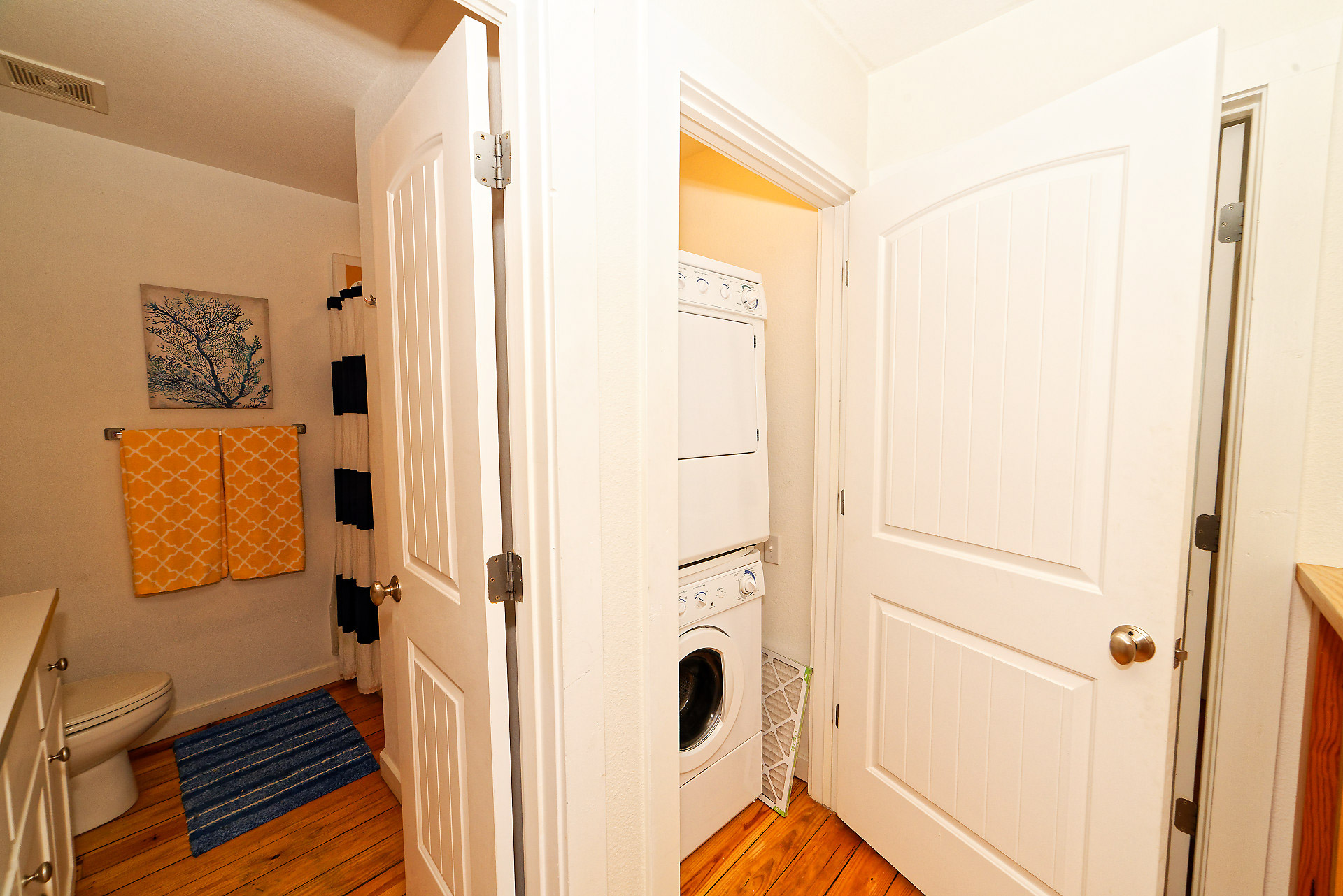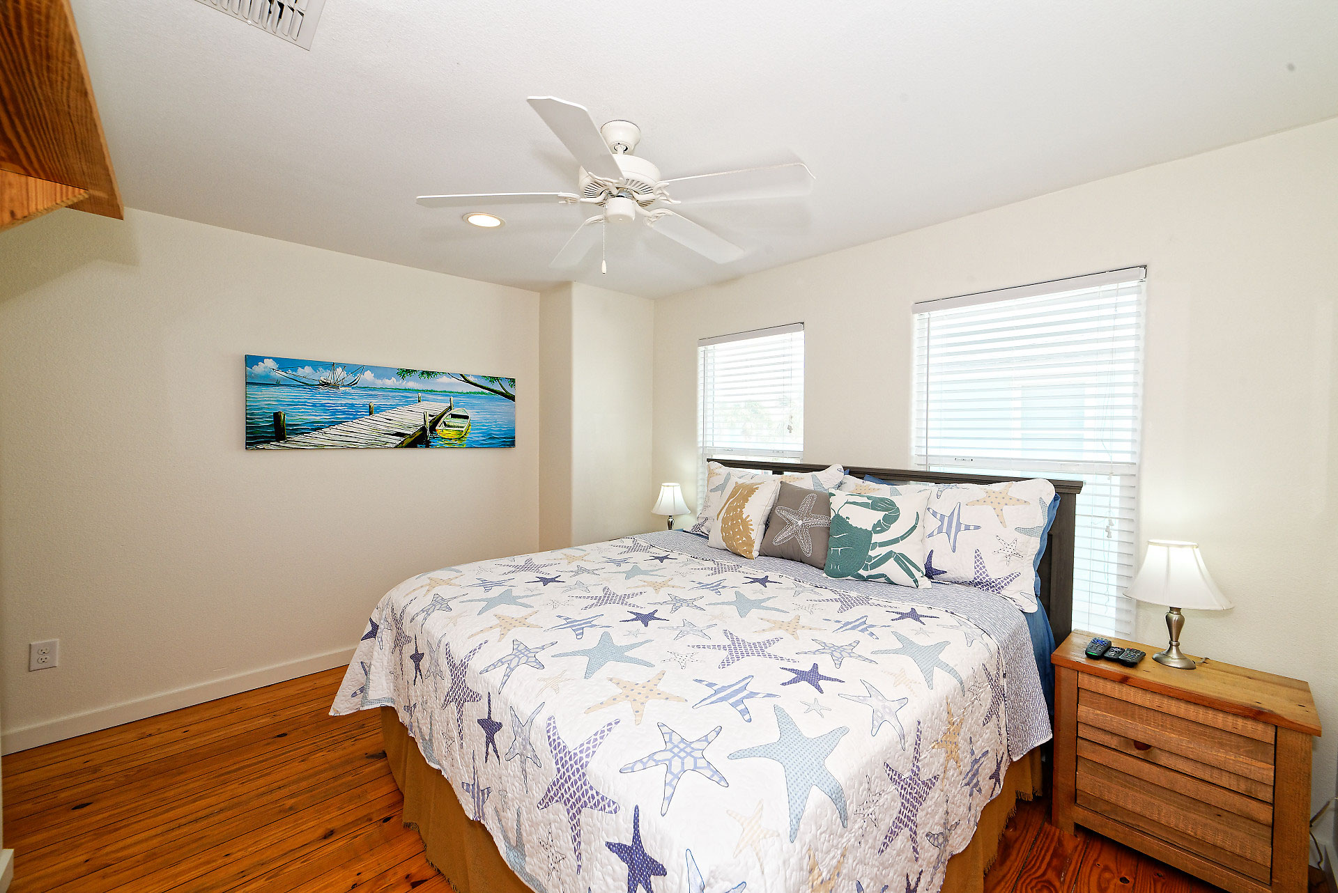 This 3/2.5 townhom is located in The Commons which is GOLF cart accessible at the corner of Seashell and 11th St.This is a great spot for your vacation needs. The ground floor has your living room, kitchen, dining area and 1/2 bath. The 3 bedrooms are located upstairs. The master bedroom has a king bed and ensuite bathroom. The kids room has built in double over double bunk bed. The 3rd bedroom has a queen bed. All bedrooms have Smart TV's. There is a hall bathroom and washer dryer on the 2nd level.