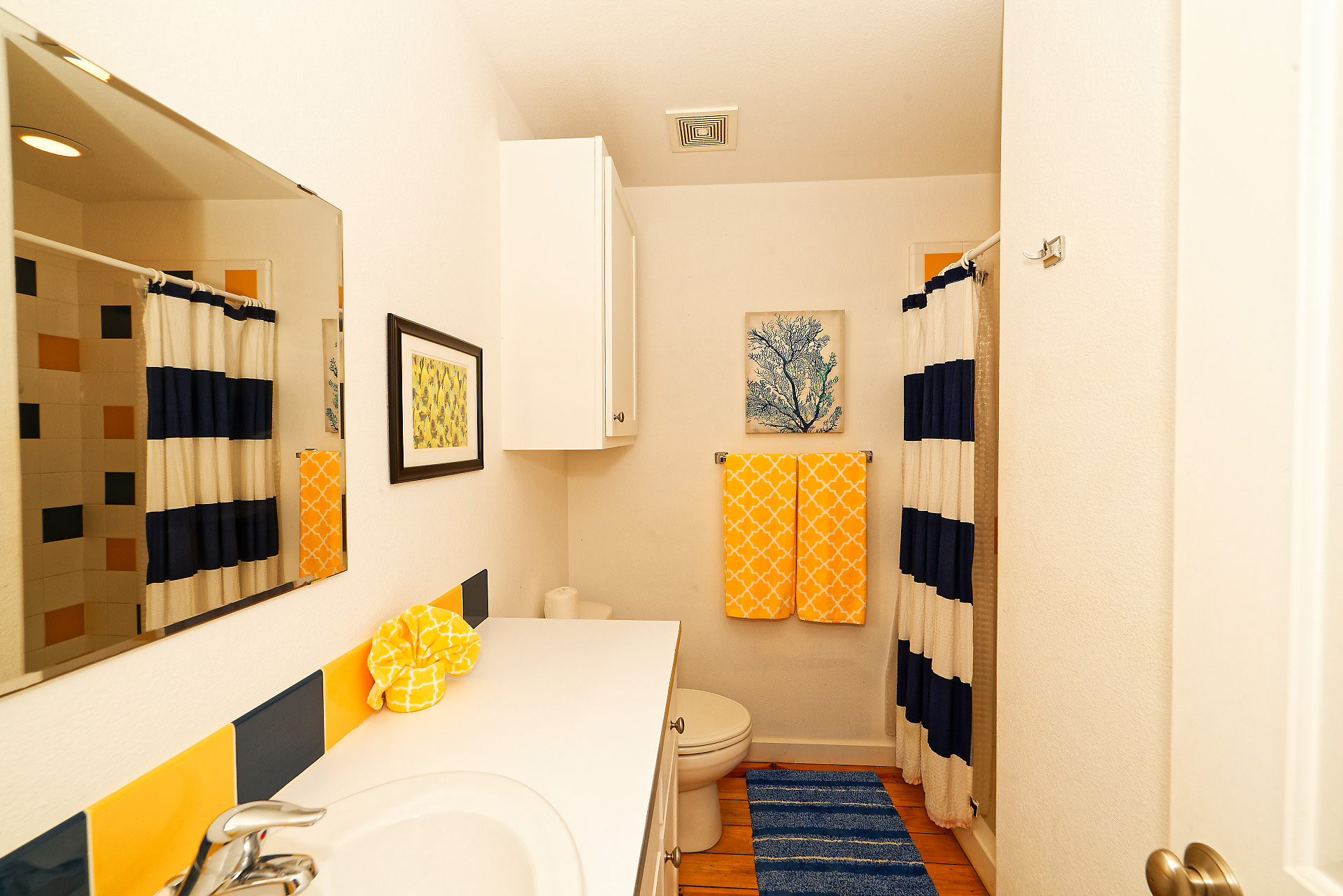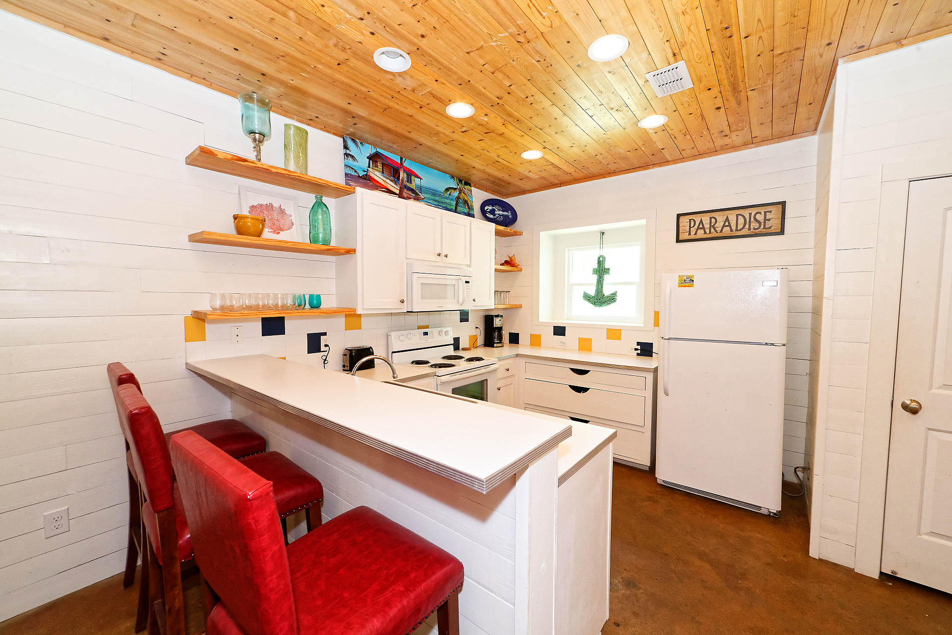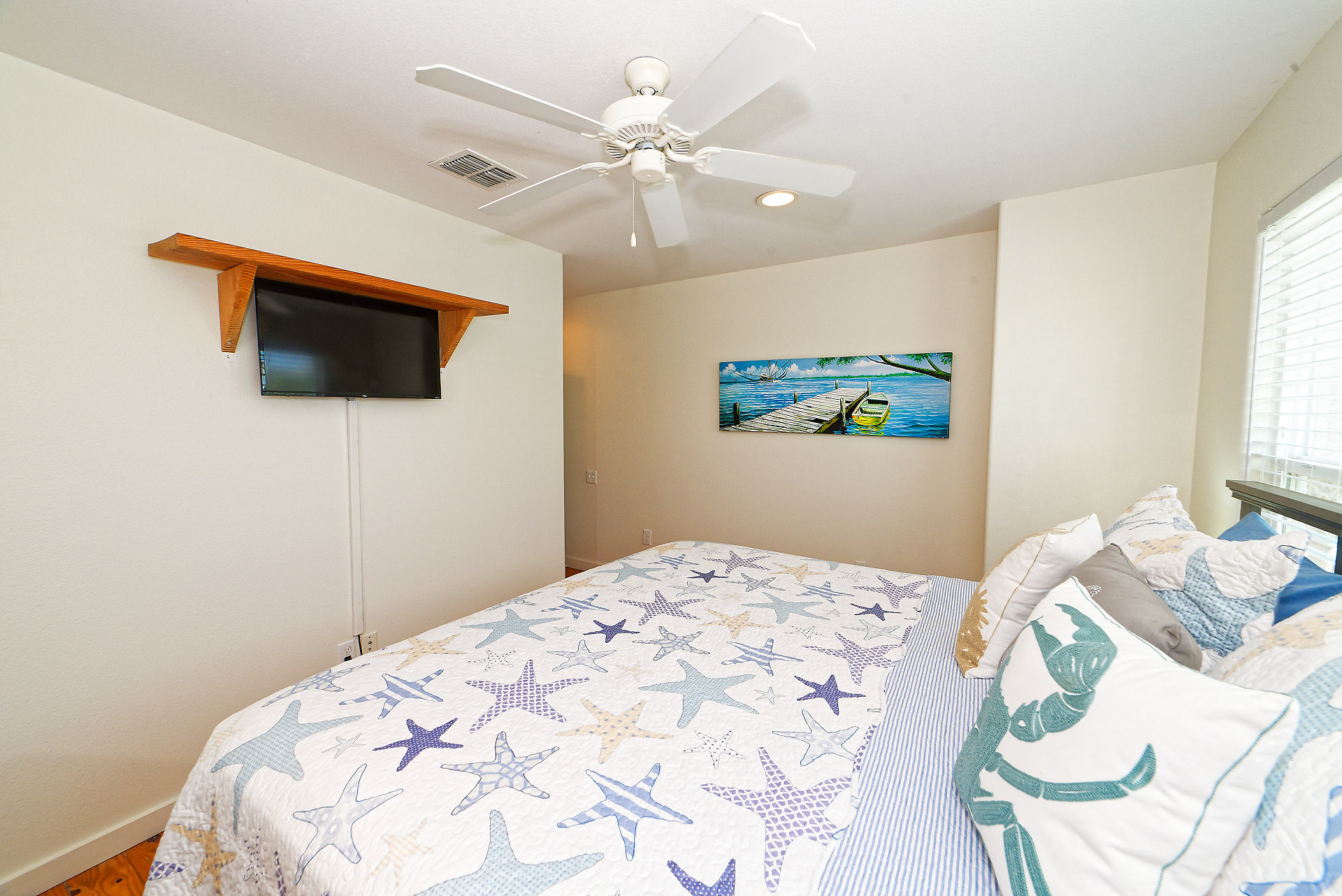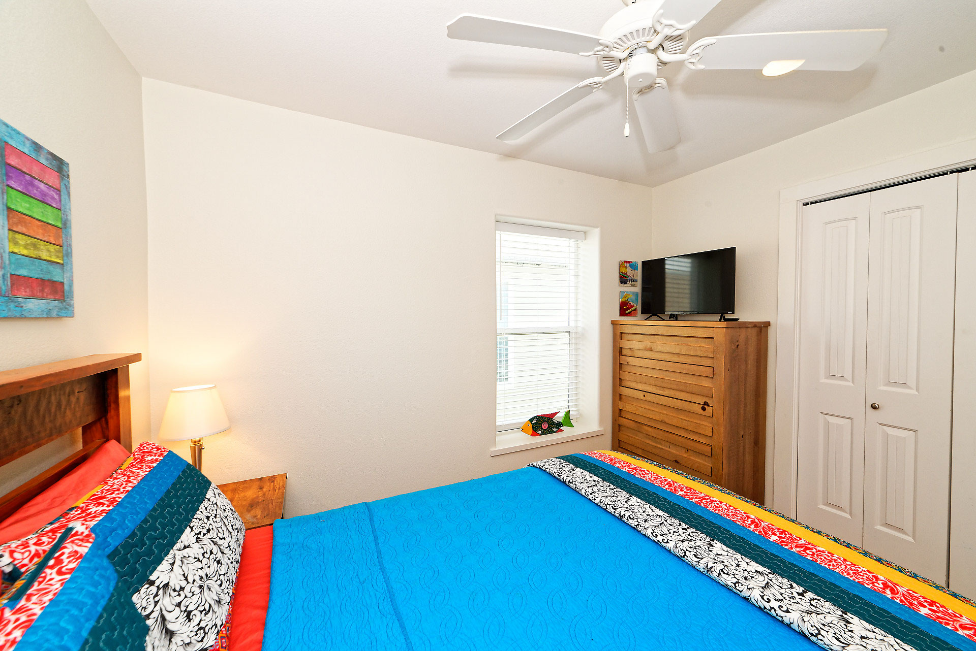 This 3/2.5 townhom is located in The Commons which is GOLF cart accessible at the corner of Seashell and 11th St.This is a great spot for your vacation needs. The ground floor has your living room, kitchen, dining area and 1/2 bath. The 3 bedrooms are located upstairs. The master bedroom has a king bed and ensuite bathroom. The kids room has built in double over double bunk bed. The 3rd bedroom has a queen bed. All bedrooms have Smart TV's. There is a hall bathroom and washer dryer on the 2nd level.