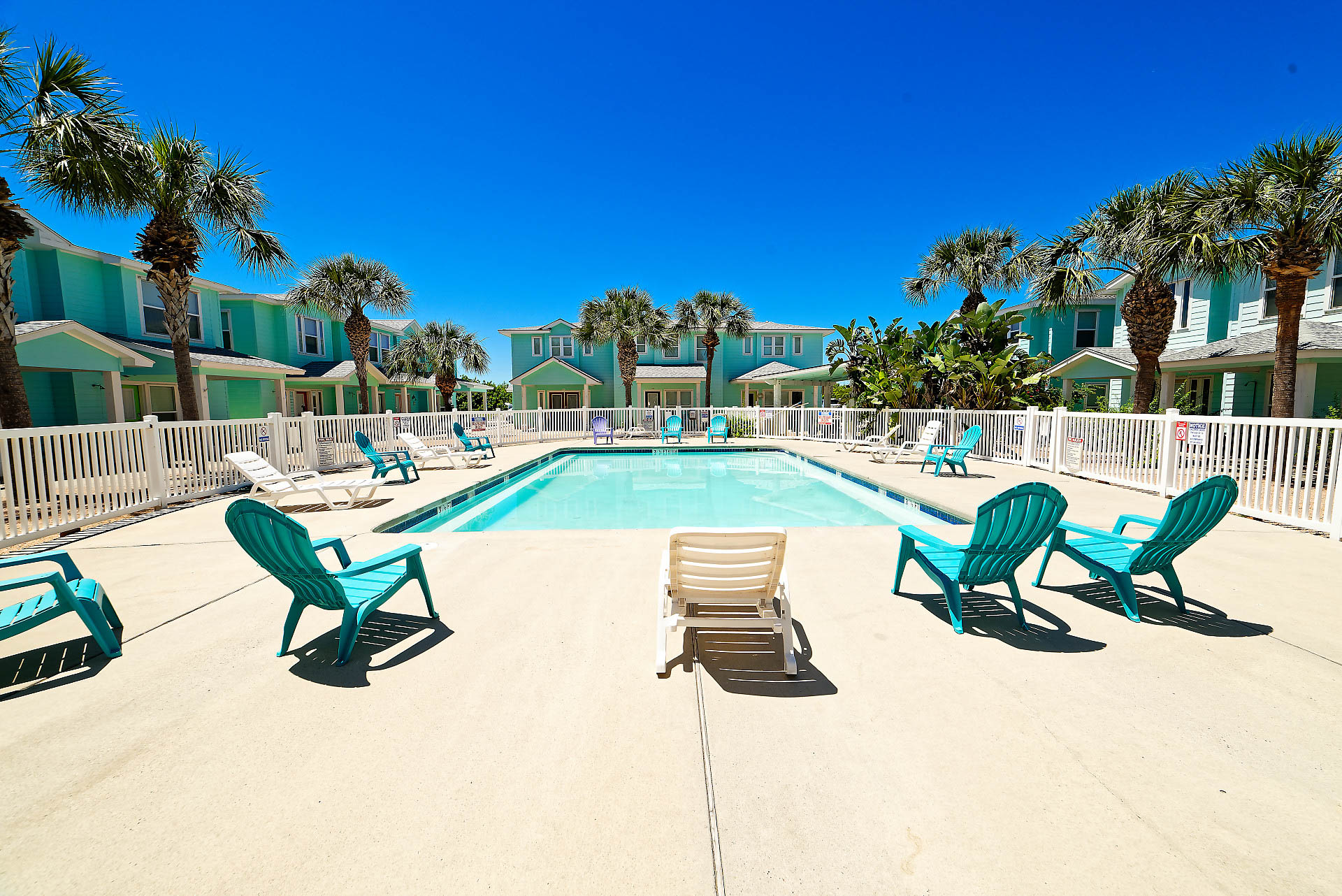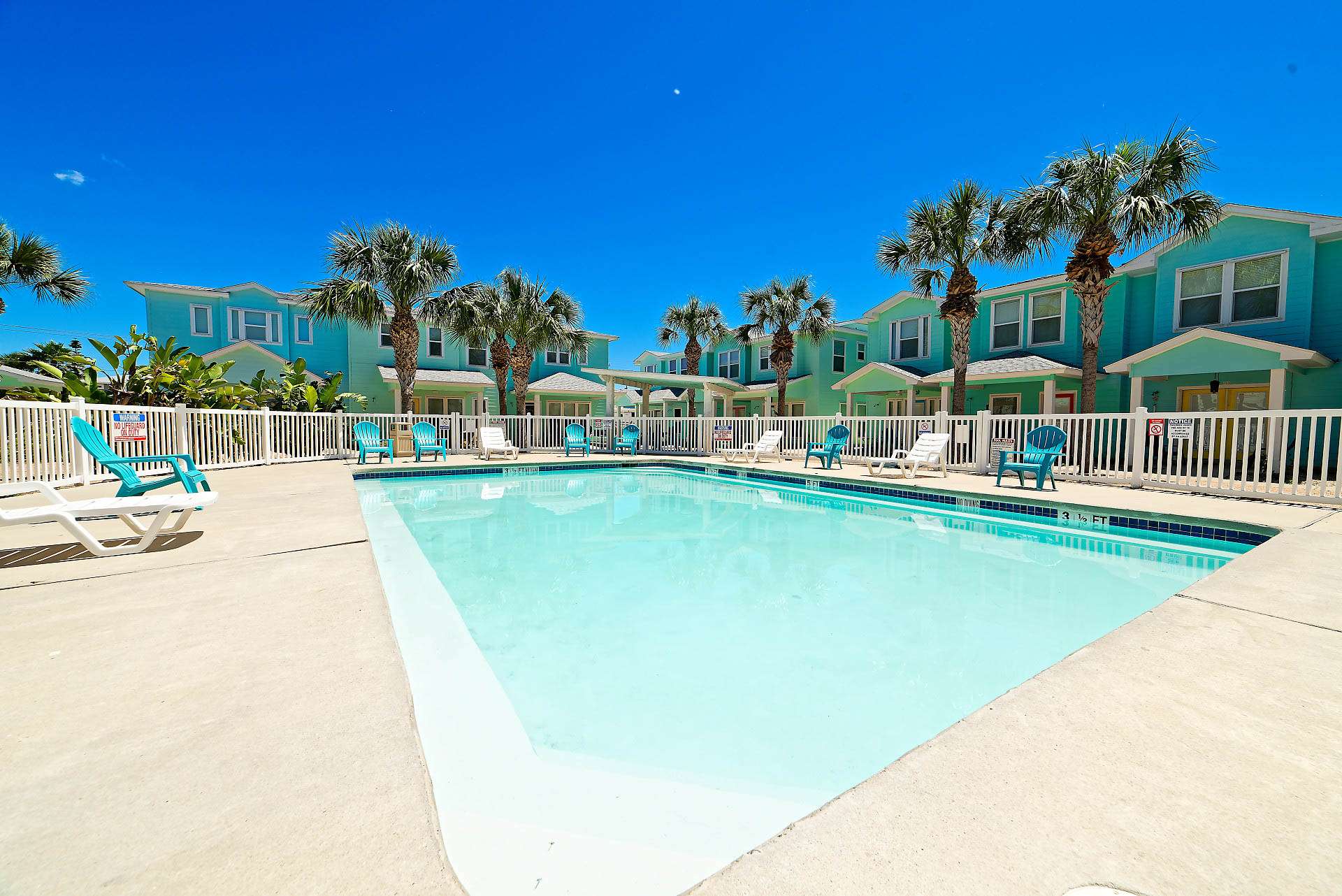 The community pool is just outside your door. There are hammocks for relaxing, BBQ grills and picnic tables with shaded cabana all centrally located between the units. You have an outdoor shower on your shaded furnished porch surrounded with tropical plants. The home has 10" thick cement walls which keep it quiet and private inside. It's an easy walk to the beach down Anchor Drive or Sandcastle Drive. And not far from all the fun, great restaurants and nightlife Port Aransas has to offer. This townhome is located in the golf cart approved driving area.