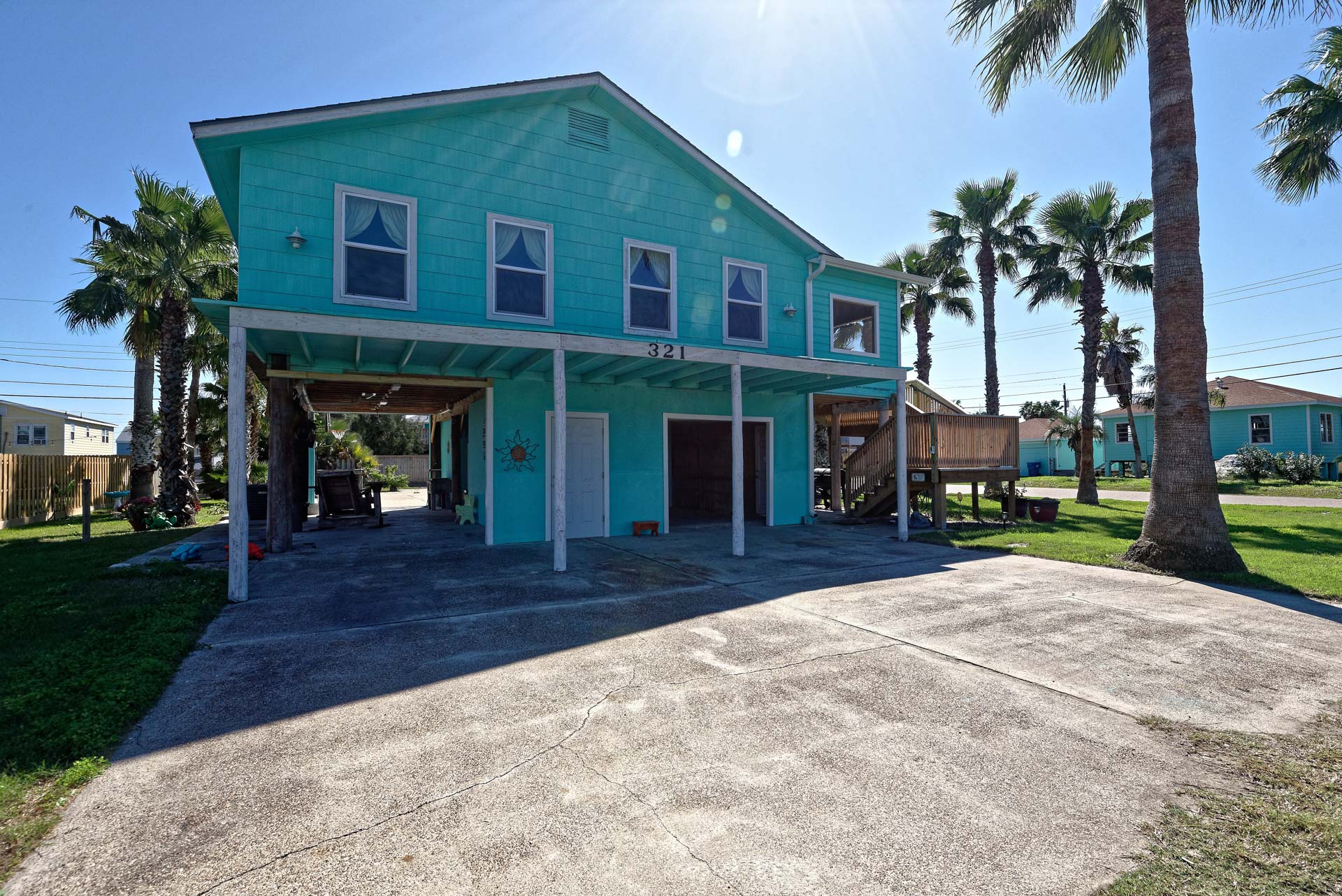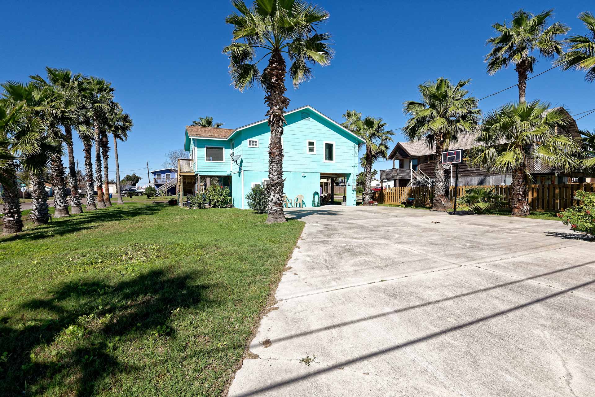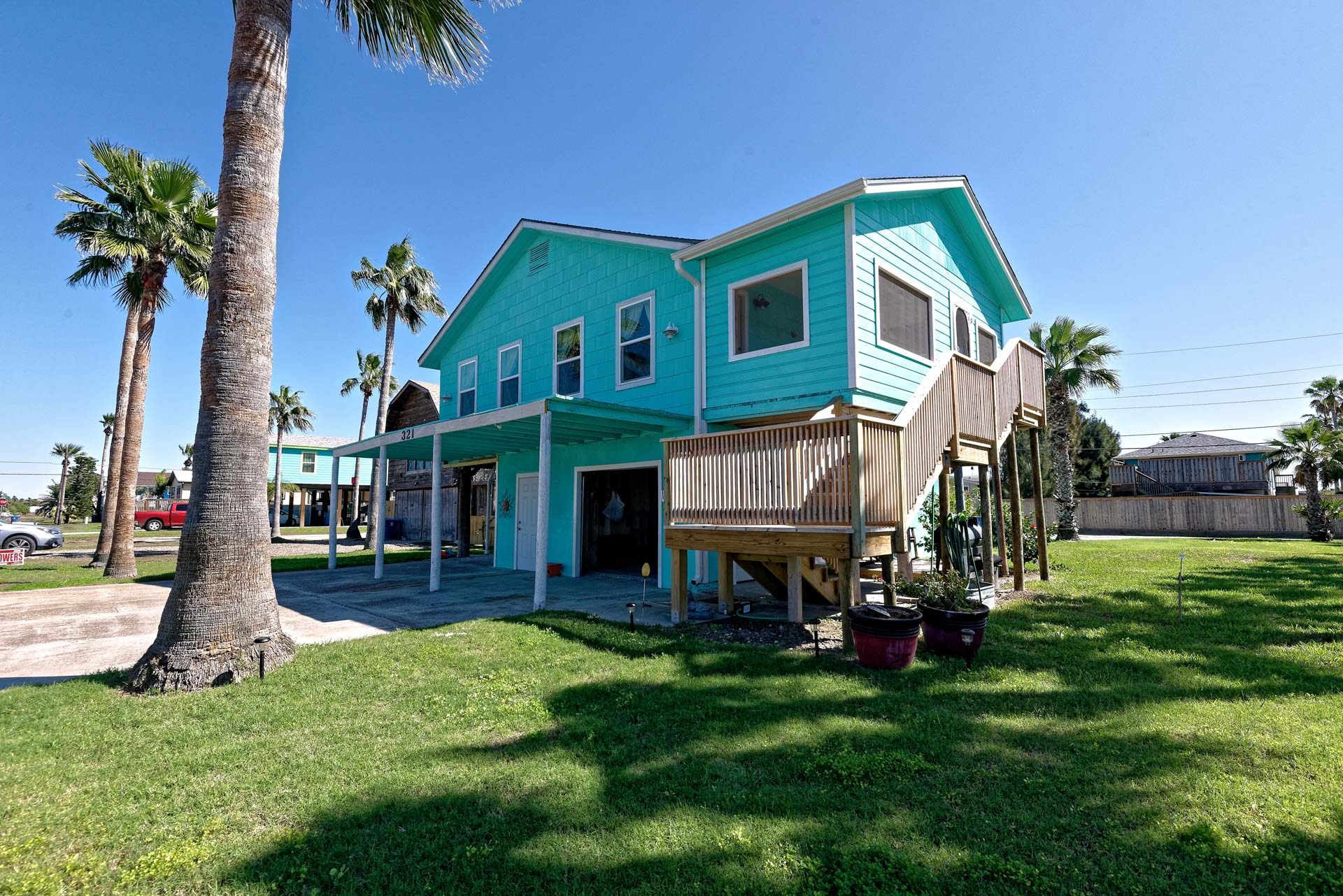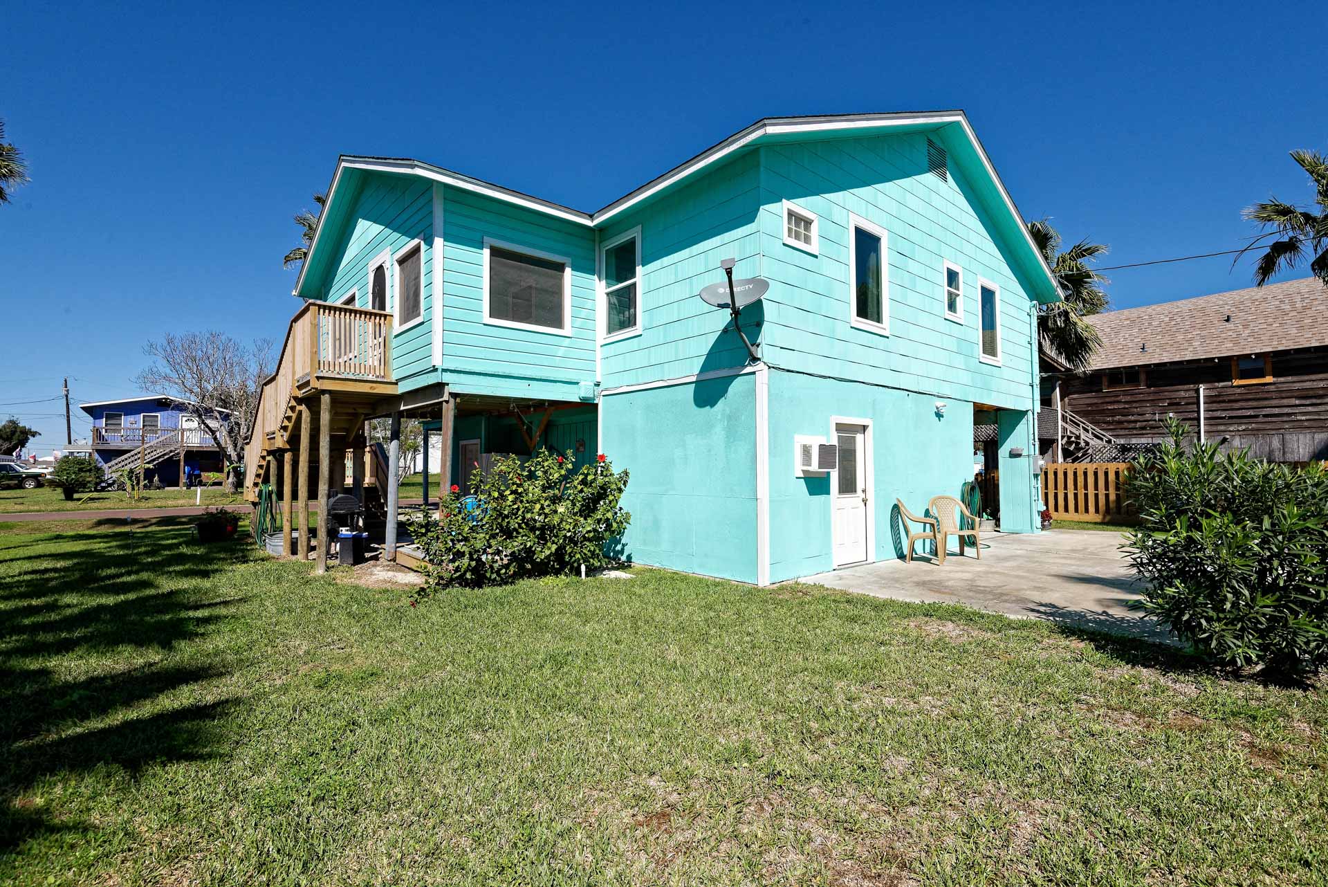 This is your Vacation Station! If you love outdoor spaces, this is the house for you. Located on a corner lot, there is lots and lots of outdoor areas to BBQ, hang out in the shade or let the kids play basketball in the huge driveway. Plenty of parking too, so bring your boat. Upstairs is a screened in porch that leads to the living room with open floor plan to the kitchen. Relax on the porch swing while enjoying the nearly constant coastal breeze. We are pet friendly so bring your dog along too!!