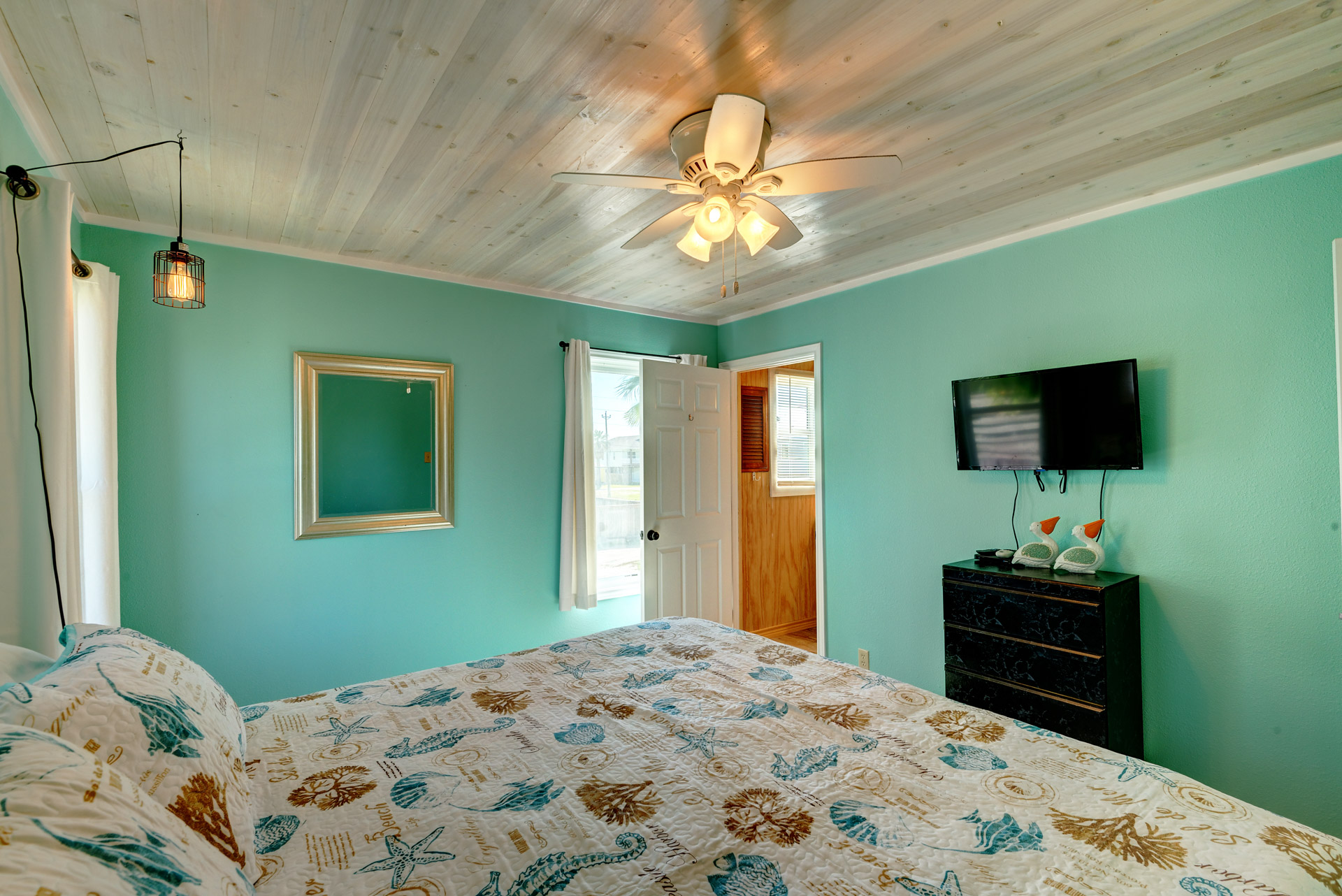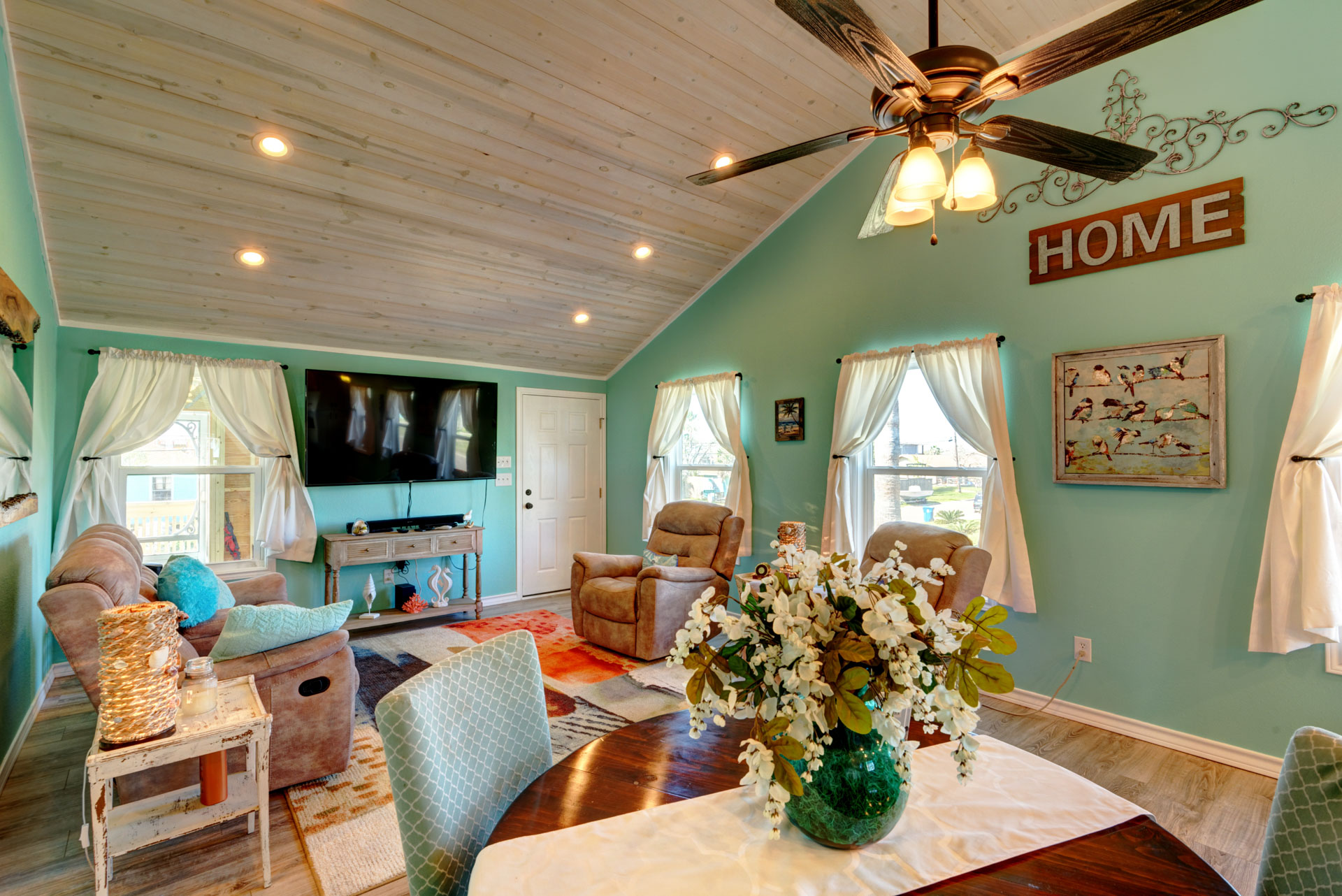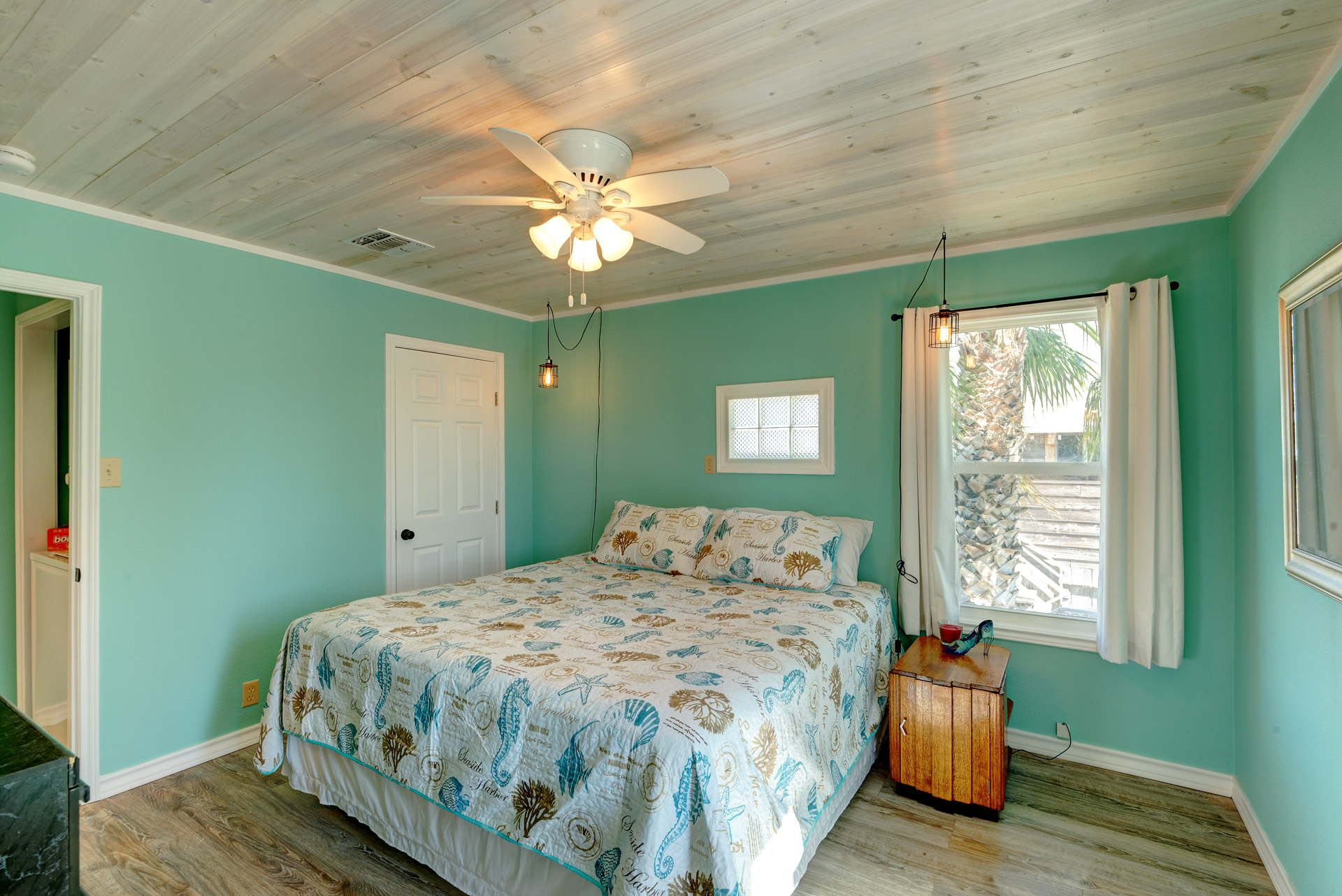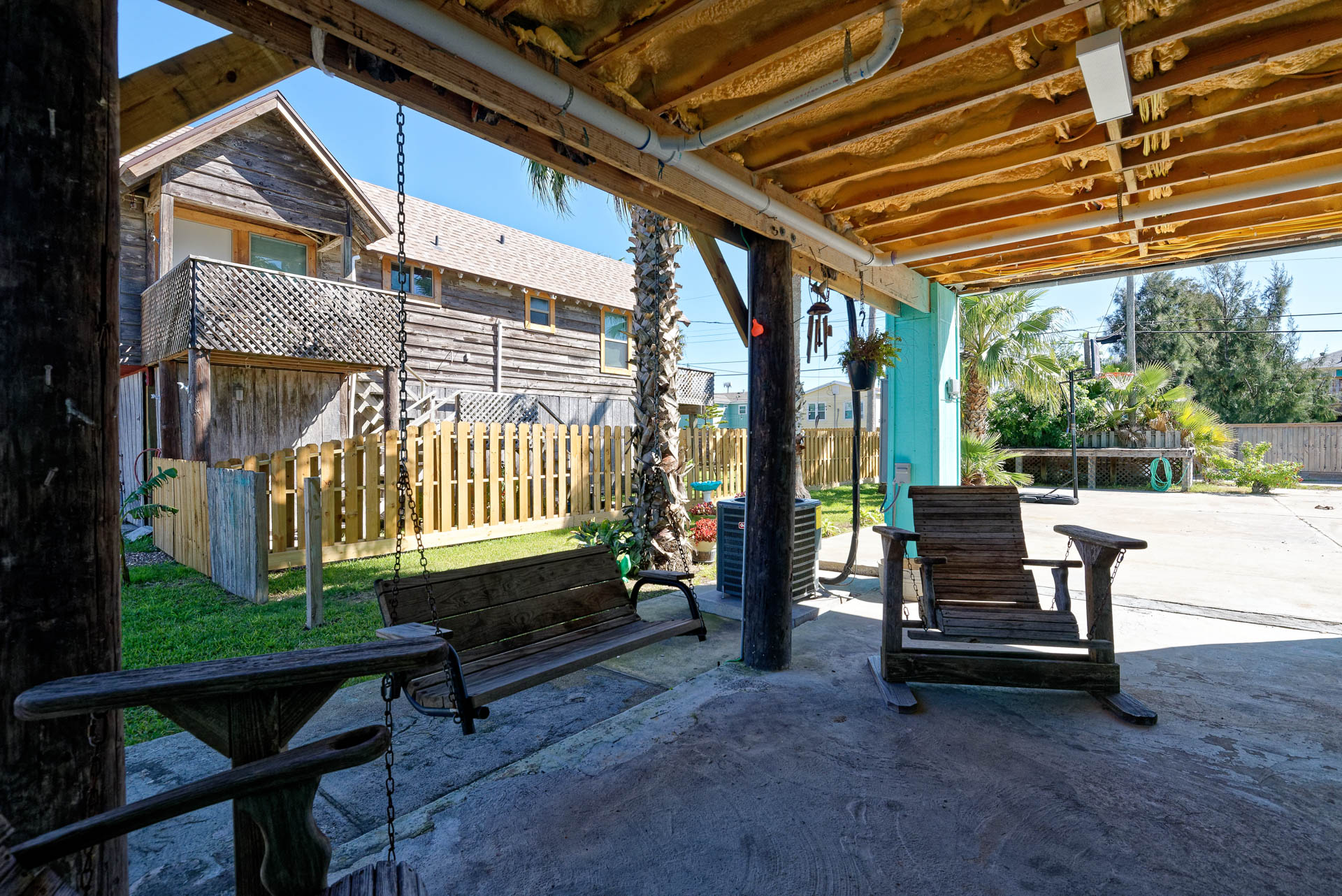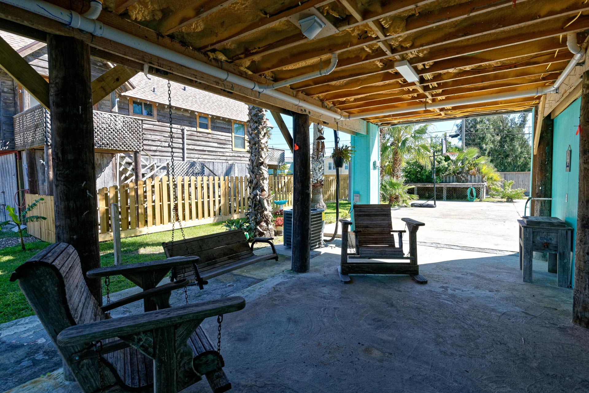 This is your Vacation Station! If you love outdoor spaces, this is the house for you. Located on a corner lot, there is lots and lots of outdoor areas to BBQ, hang out in the shade or let the kids play basketball in the huge driveway. Plenty of parking too, so bring your boat. Upstairs is a screened in porch that leads to the living room with open floor plan to the kitchen. Relax on the porch swing while enjoying the nearly constant coastal breeze. We are pet friendly so bring your dog along too!!